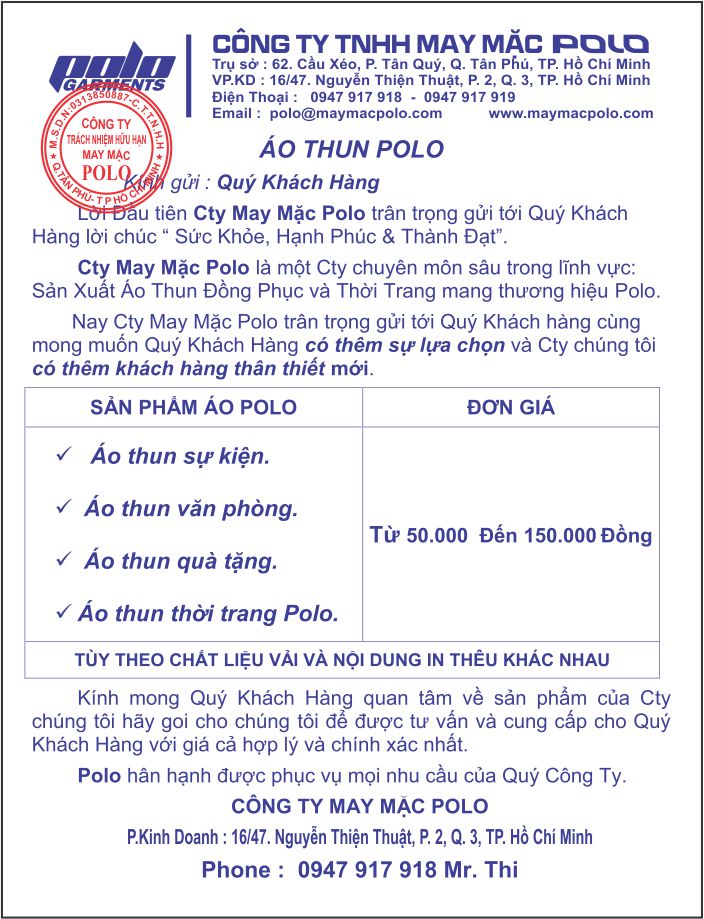 CÔNG TY MAY MẶC POLO - MAY ÁO THUN QUẢNG CÁO TẠI TP HCM